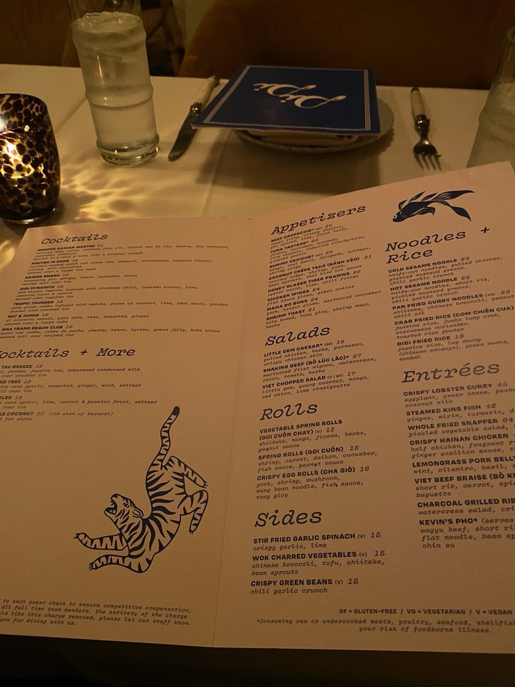 Introducing the menu at Di Di - a Vietnamese salad restaurant located in West Hollywood, CA. This trendy and upscale spot offers a variety of vegan options and is perfect for groups and intimate dinners. The menu features dishes like shrimp toast, honey glazed tiger prawns, chicken wings, and DiDi fried rice that customers rave about. The modern twist on traditional Vietnamese flavors might be bold for some, but the overall experience is delightful. The dimly lit ambiance and 90s music create a unique atmosphere, although some find the seating a bit close together. Service is attentive and efficient, adding to the overall positive dining experience. The cocktails are worth trying, and the food is cooked to perfection, with standout dishes like the shrimp spring rolls and chicken wings leaving a lasting impression. A visit to Di Di promises a culinary adventure with a touch of sophistication and charm.